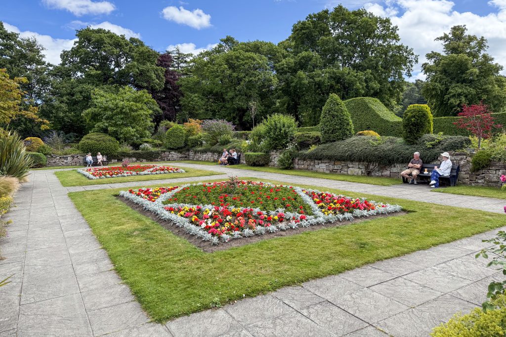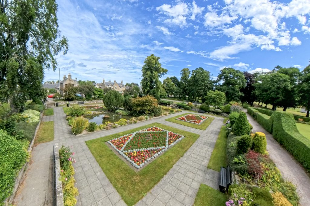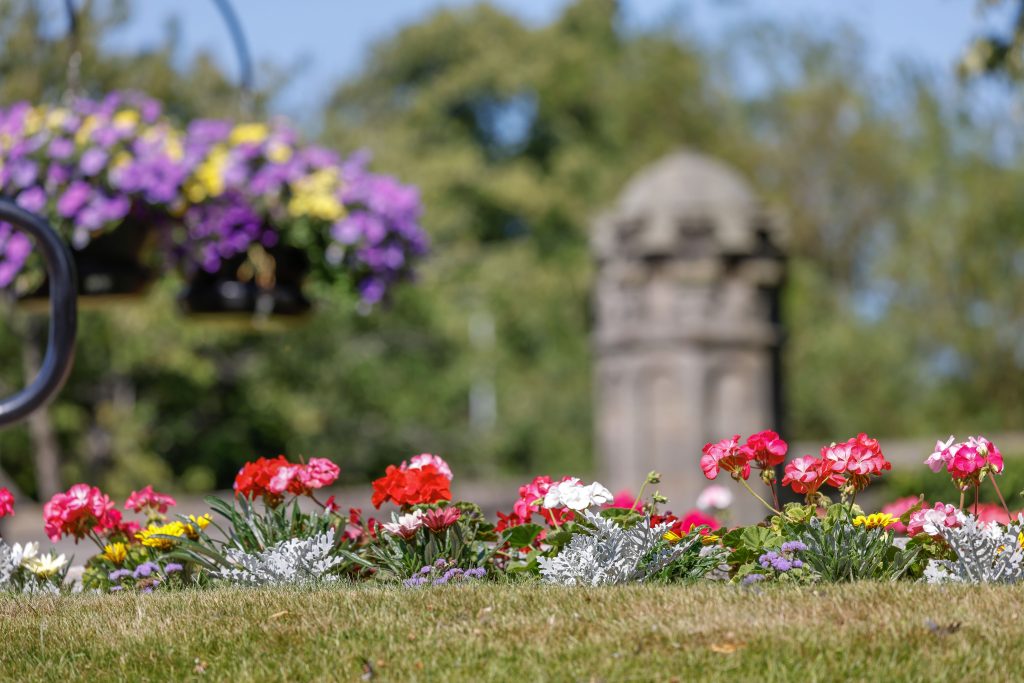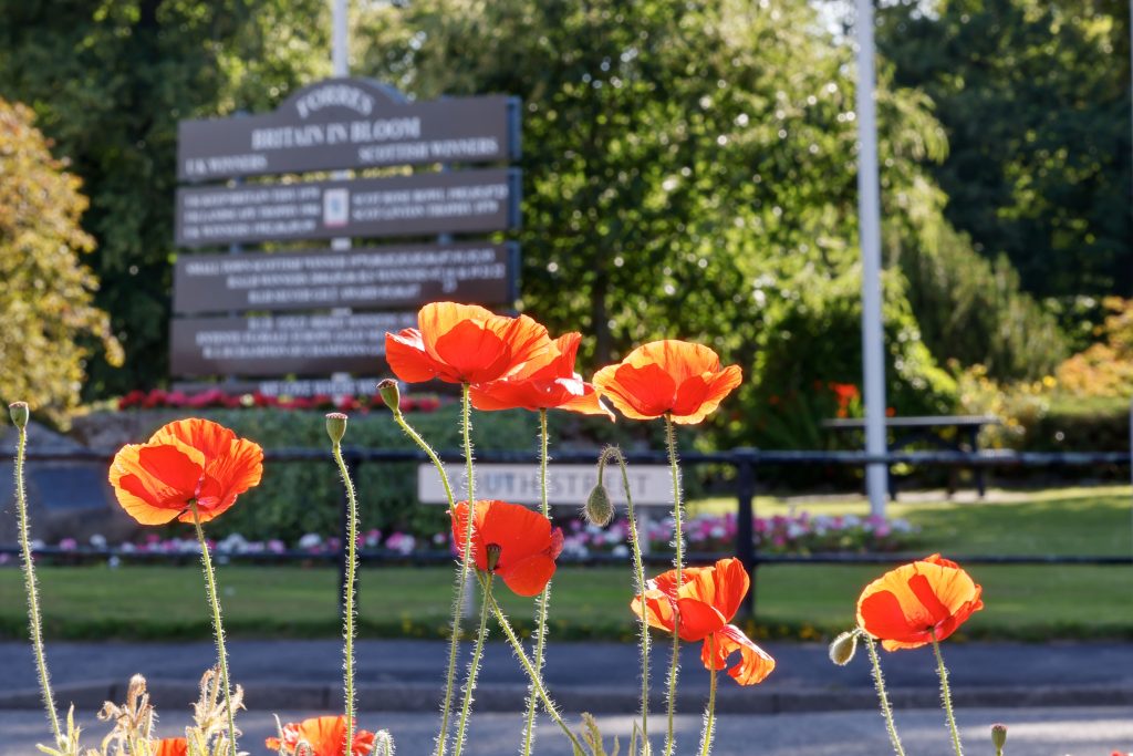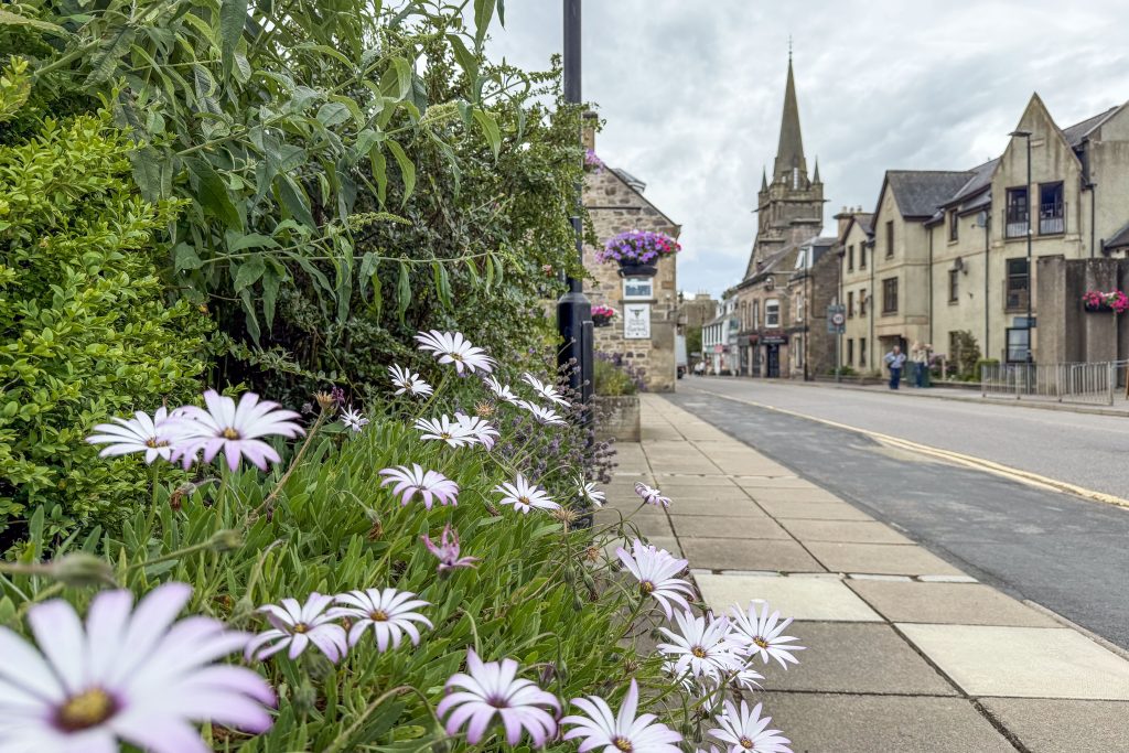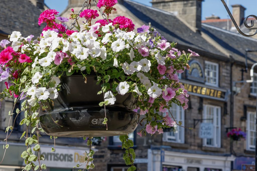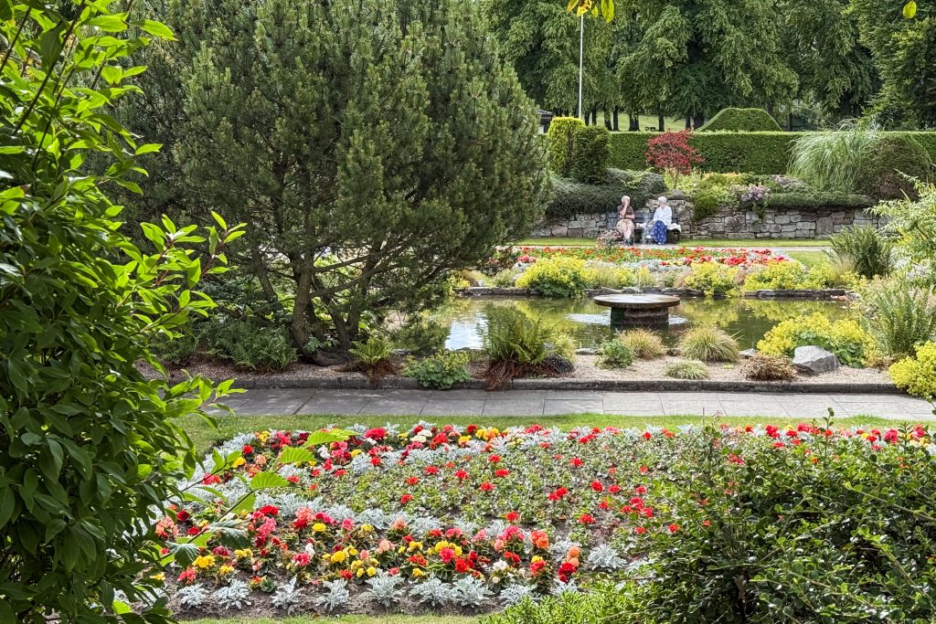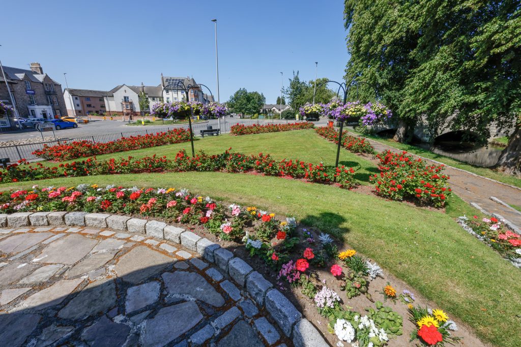 Once again the efforts of Forres in Bloom are brightening up the town with floral arrangements. Grant Park is blooming with its flower scultptures, the sunken garden memerises with its gemetric patterns, the high street is lined with baskets, and the war memorial i a stunning dash of colour.