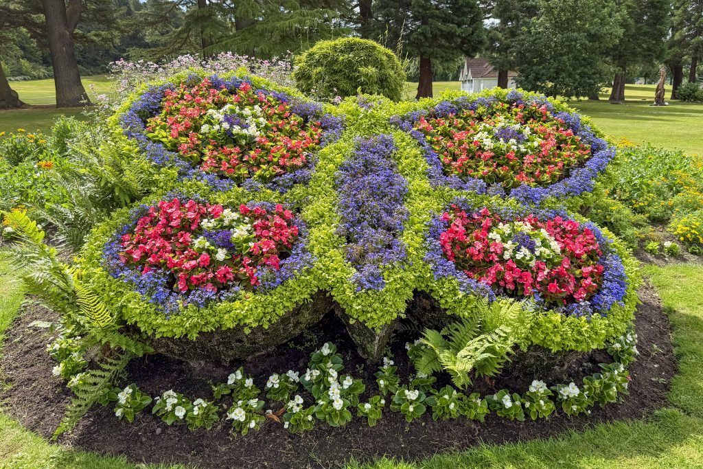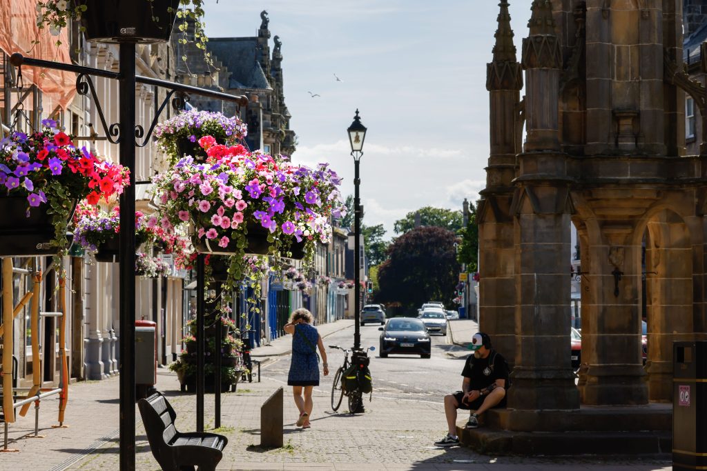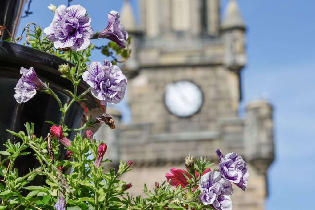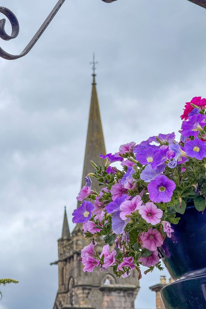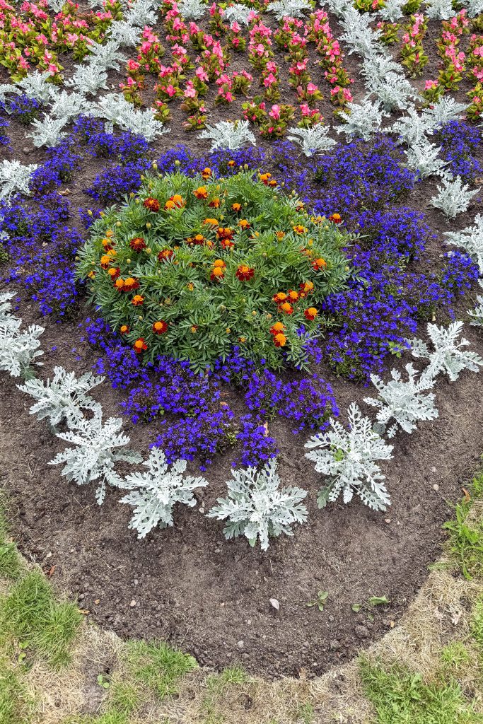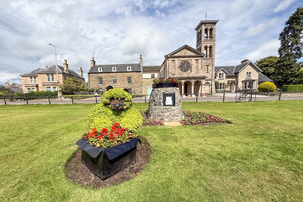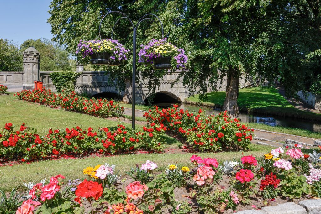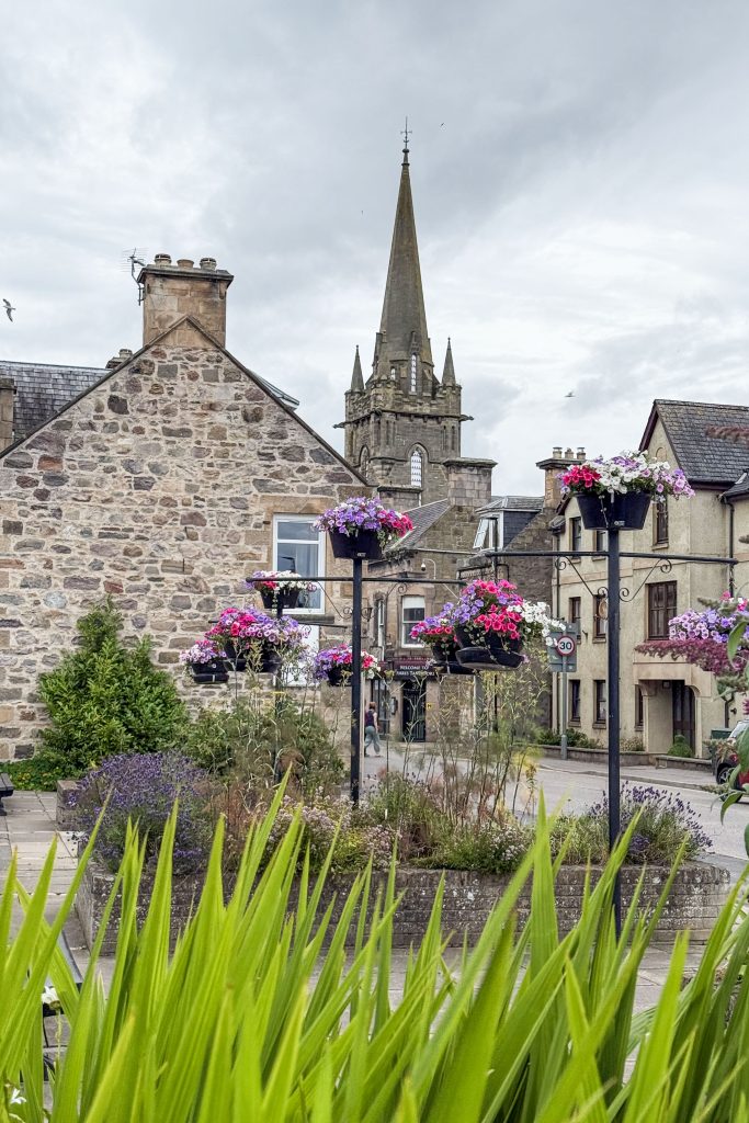 Once again the efforts of Forres in Bloom are brightening up the town with floral arrangements. Grant Park is blooming with its flower scultptures, the sunken garden memerises with its gemetric patterns, the high street is lined with baskets, and the war memorial i a stunning dash of colour.